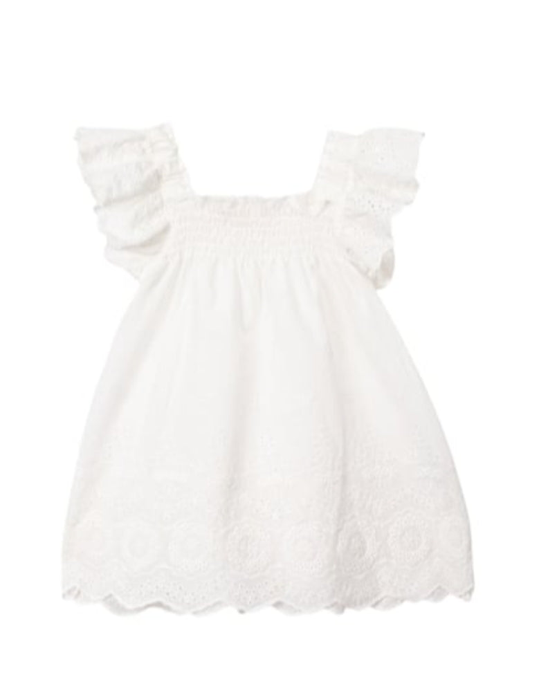 Featuring intricate Broderie Anglaise embroidery, a soft breathable lining, and a classic silhouette, this dress is ideal for special moments, family gatherings, or simply everyday sweetness.
