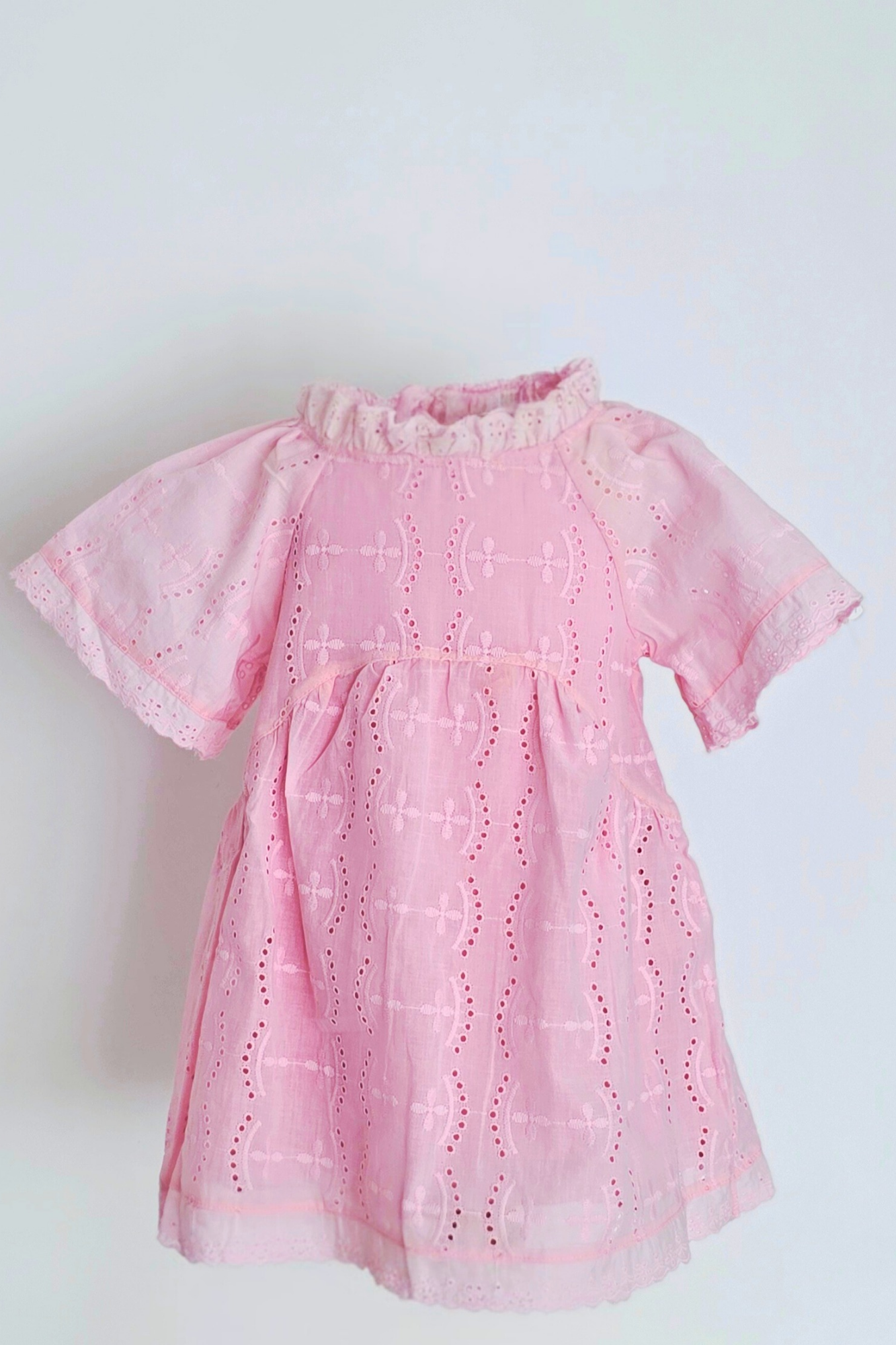 Girls - Pink Organic Cotton Summer Dress | Broderie Anglaise | Sizes 2–6 Years