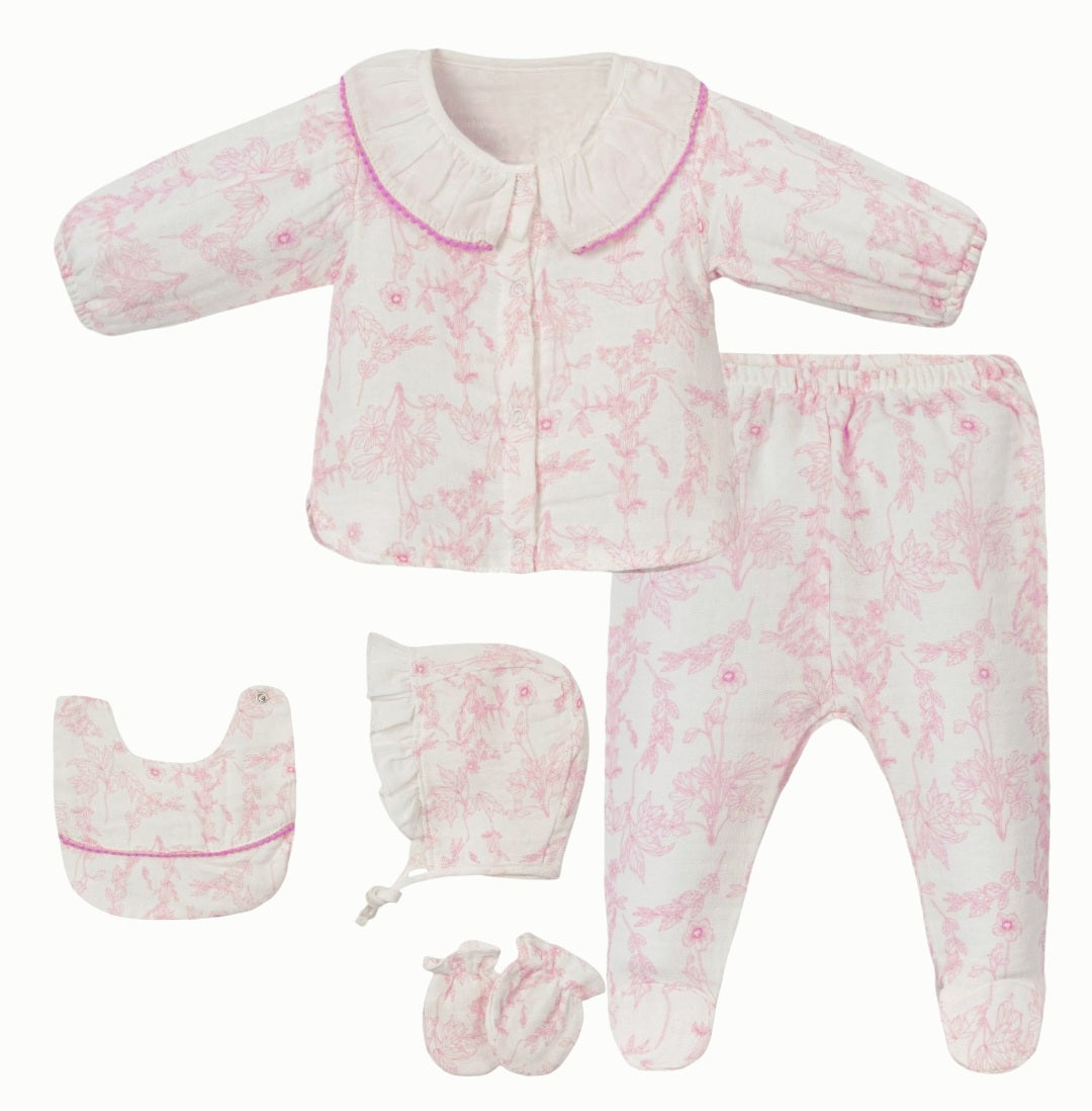 Organic Little One — Soft Pink Bloom Newborn Essentials Set (Organic Muslin)