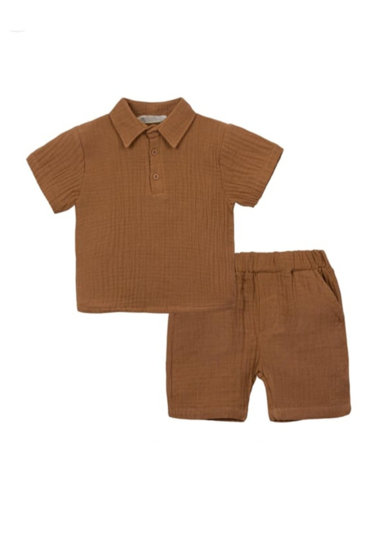 Organic Muslin Cotton Brown Polo & Shorts Set (2-6 Years)