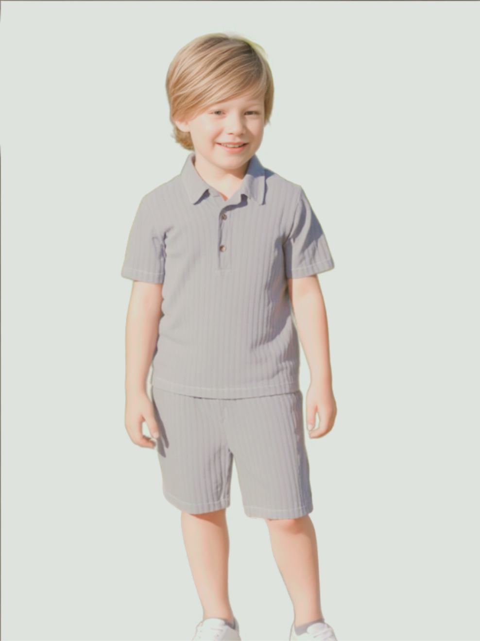 Organic Muslin Cotton Grey Polo & Shorts Set (2-6 Years)