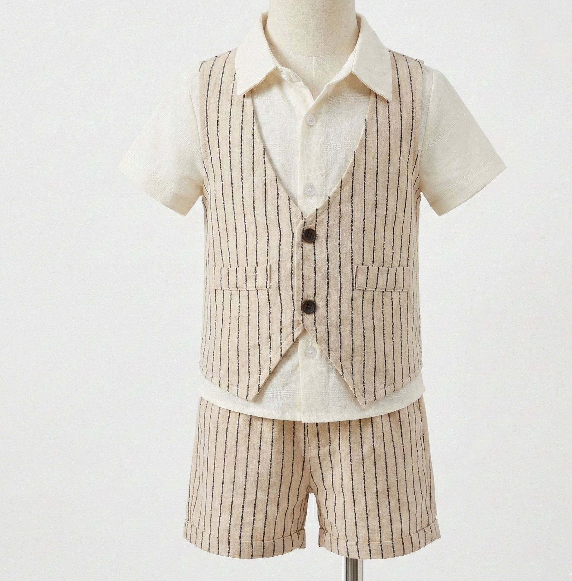 Elevate your child’s style with our Boys Organic Cotton Striped Waistcoat, designed for both comfort and elegance. Crafted from premium organic cotton, this waistcoat features a classic vertical stripe pattern and a tailored silhouette. Perfect for weddings, celebrations, or smart-casual looks, it includes an adjustable back strap to ensure the perfect fit as your child grows. Pair it with matching shorts, trousers, or layer over a shirt for effortless charm.