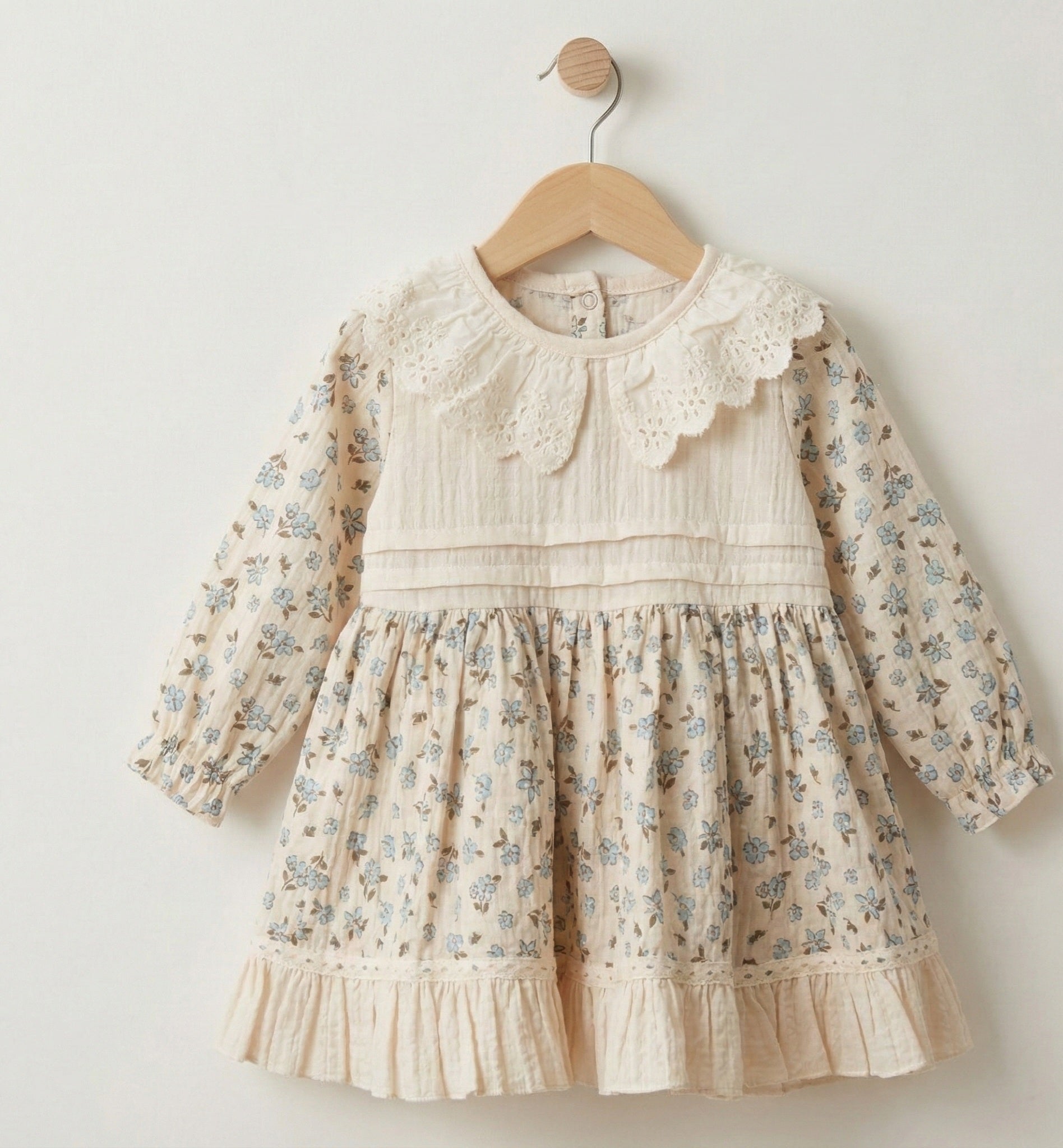 Blue Floral Muslin Cotton Dress with Lace Collar | Baby & Toddler