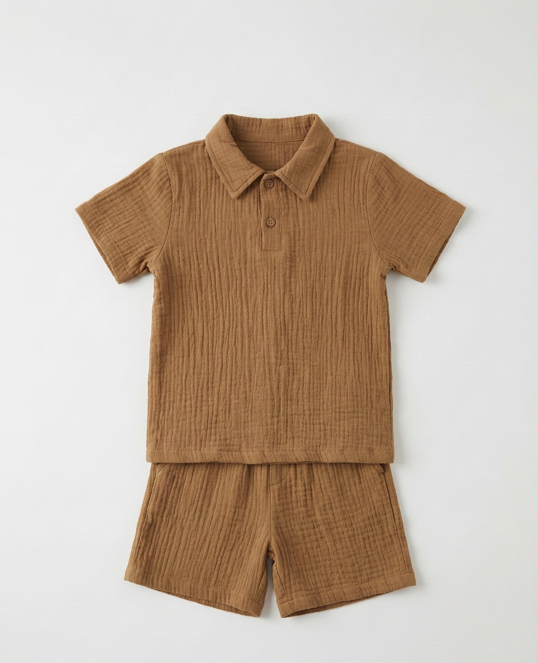 Organic Muslin Cotton Brown Polo & Shorts Set (2-6 Years)