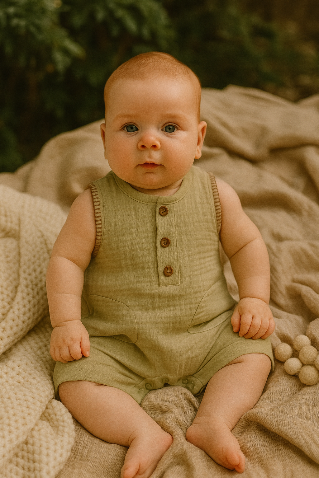 Inspired by the grounding tones of nature, this romper is perfect for warm-weather adventures or slow days at home.